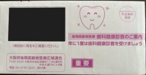 令和8年度の大阪府後期高齢者医療広域連合が実施されております「後期高齢者 歯科健康診査」を受け付けております。